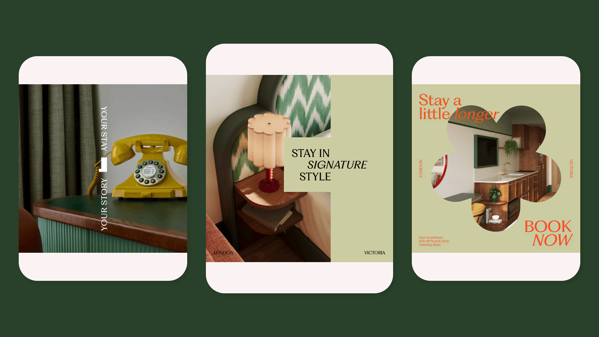 The solution is a modular campaign framework. Built as a creative toolkit, it allows interchangeable elements — visuals, copy, icons, colours, illustrations — to be adapted by property, target market, and funnel stage. Its flexible structure supports ongoing optimisation, ensuring campaigns remain effective and relevant across different contexts.